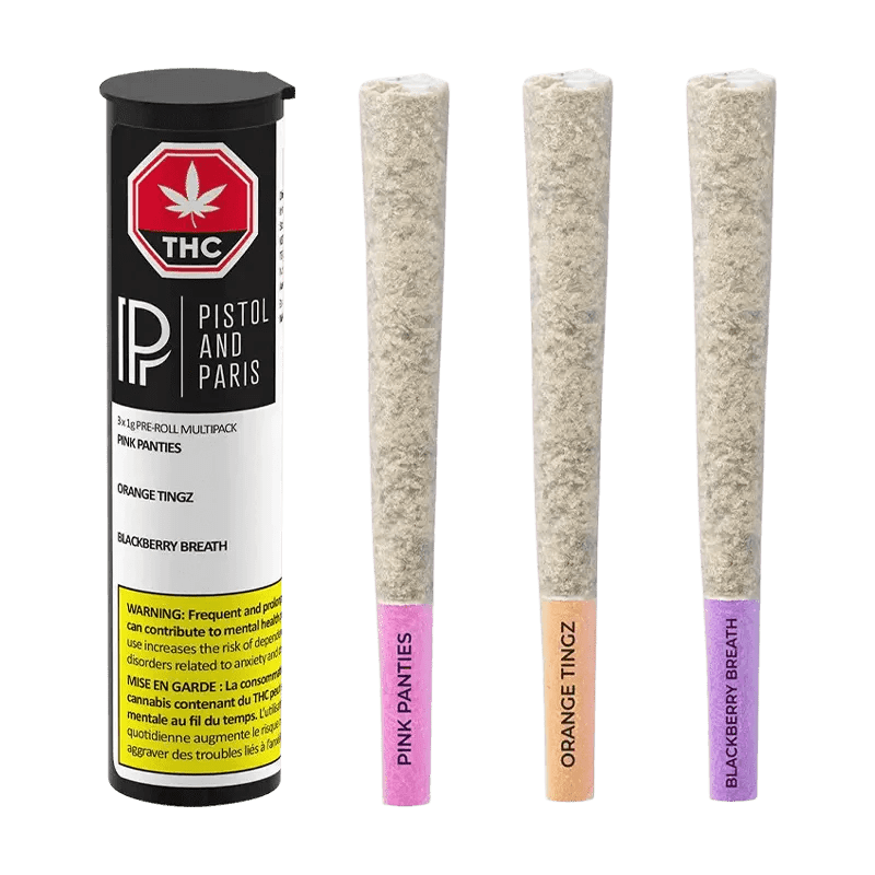 Flavours Variety Pack Pre-Rolls contains three of their most flavourful cultivars. Orange Tingz is an indica-dominant with a punchy orange, sweet flavour. Indica-dominant Blackout Bobby is smooth and creamy. Sativa-dominant Hawaiian Fanta packs an uplifting sweet and fruity punch. All Pistol and Paris pre-rolls are packed by hand using fresh ground flower at their Agassiz, BC facility. Lineage: Slurricane X TMAC, Gelato X Rainbow Chip, Pineapple Fanta x Grape Gasoline.